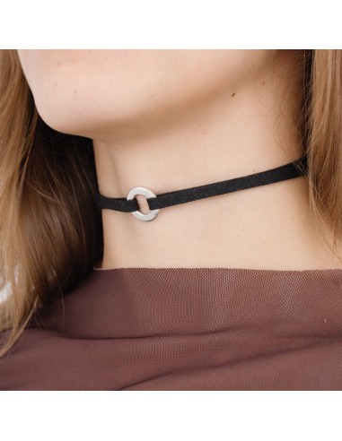 Choker de gamuza con dije exclusivo geométrico níquel.