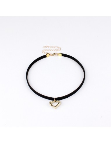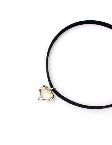 Choker de gamuza con dije exclusivo con forma de corazón dorado.