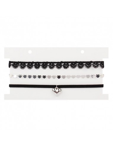 Set de tres chokers de encaje, cadena diferenciada y gamuza con dije exclusivo de ccb con forma de corazón.