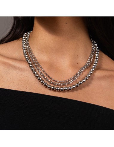 Collar de triple caída de cadena diferenciada con bolitas exclusivas de ccb níquel.