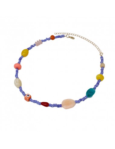 Collar de mostacillas con piezas exclusivas de acrílico y de vidrio.