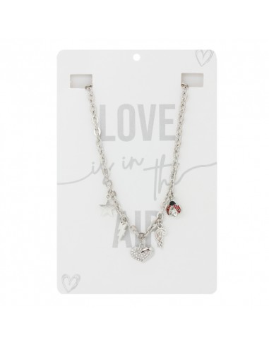 Collar de cadena difereniada con múltiples dijes exclusivos y de strass níquel.