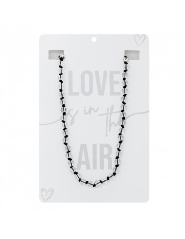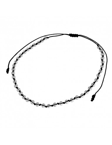 Collar de hilo con cierre en macramé y bolitas de vidrio.