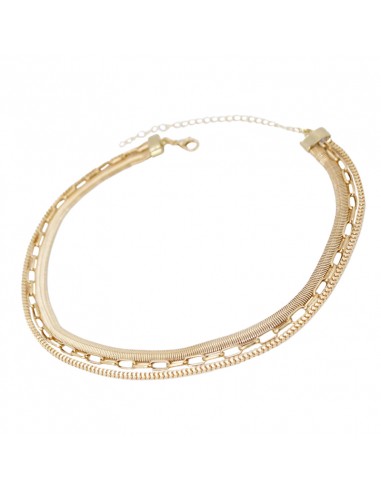 Collar de triple caída de cadena diferenciada dorada.