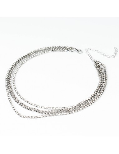 Collar de triple caída de cadena diferenciada y de strass níquel.