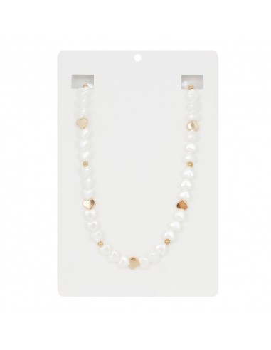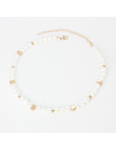 Collar corto de perlas en forma de corazon y dijes exclusivos dorados.