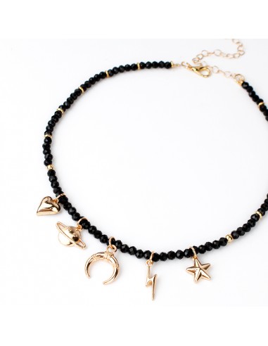 Collar de rocas de cristal con dijes exclusivos dorados.