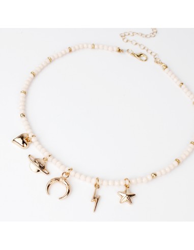 Collar de rocas de cristal con dijes exclusivos dorados.