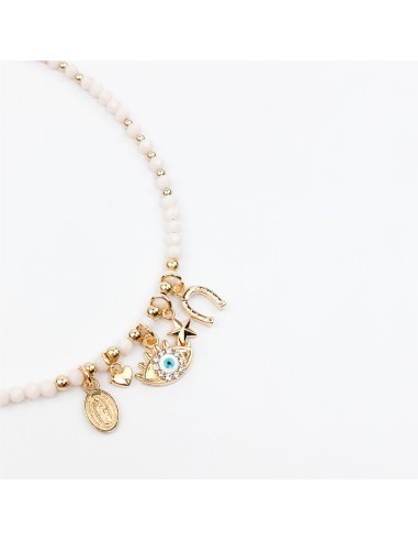 Collar de rocas de cristal con múltiples dijes exclusivos dorados.
