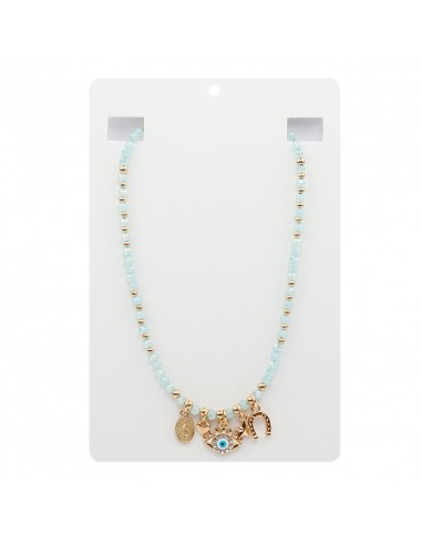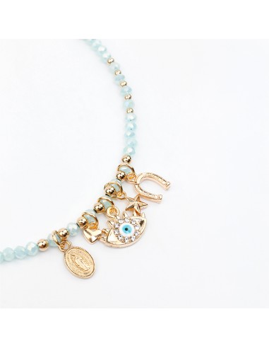 Collar de rocas de cristal con múltiples dijes exclusivos dorados.