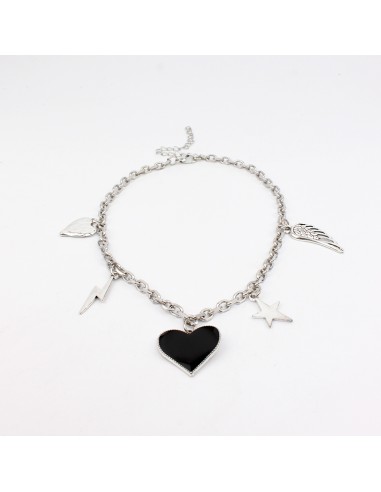 Collar de cadena diferenciada con múltiples dijes exclusivos y pintados a mano níquel.