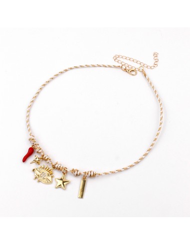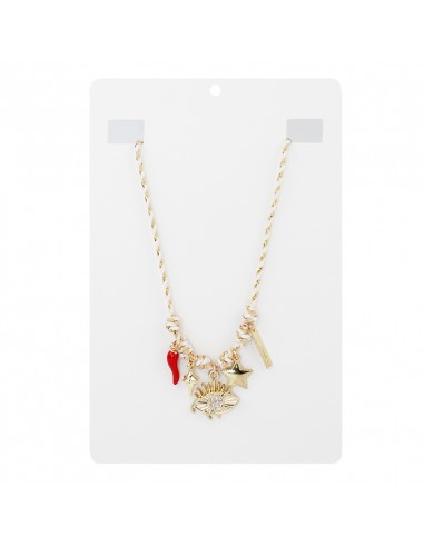Collar de cordón con múltiples dijes exclusivos y de strass dorado.
