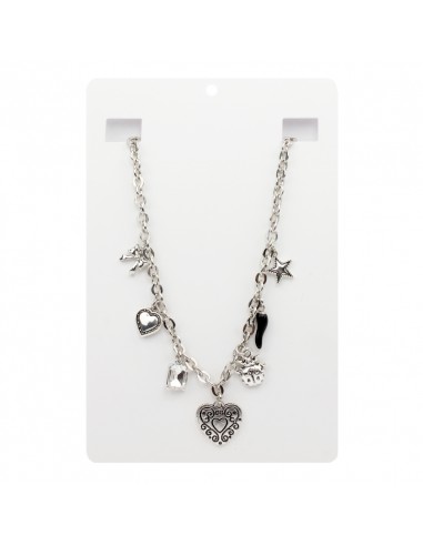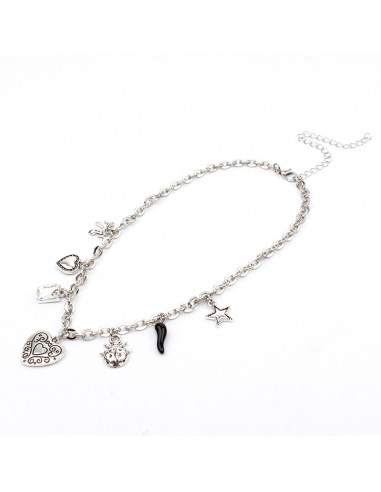 Collar corto de cadena diferenciada con múltiples dijes exclusivos níquel.