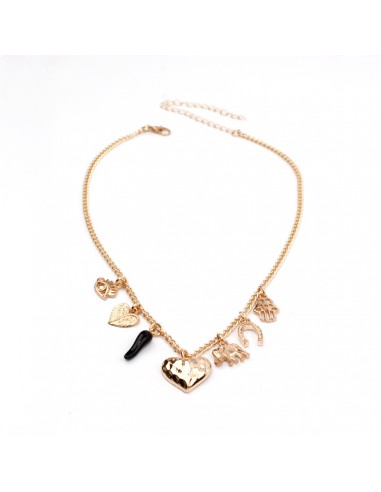 Collar de cadena diferenciada con múltiples dijes exclusivos dorados.