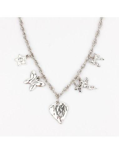 Collar de cadena diferenciada con múltiples dijes exclusivos níquel.