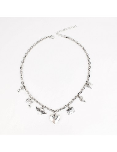 Collar de cadena diferenciada con múltiples dijes exclusivos níquel.