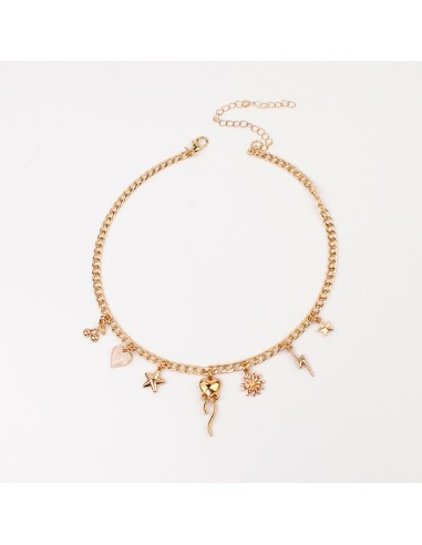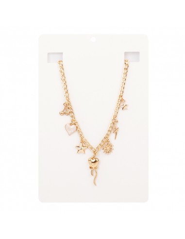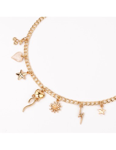 Collar de cadena diferenciada con múltiples dijes exclusivos y pintados a mano dorado.