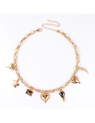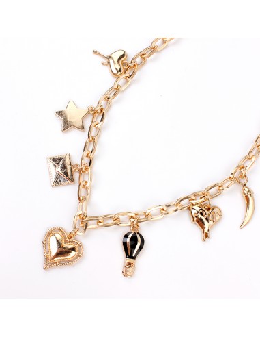Collar corto de cadena diferenciada con múltiples charms exclusivos pintados a mano dorados.