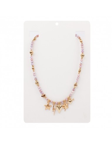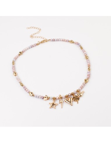 Collar corto de rocas de cristal con dijes exclusivos dorados.