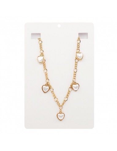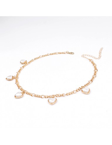 Collar corto de cadena diferenciada con múltiples charms en forma de corazón perlados dorado.