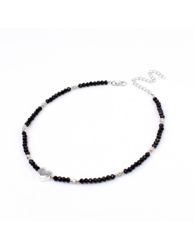 Collar corto de roca de cristal y dije exclusivo con forma de corazón níquel.
