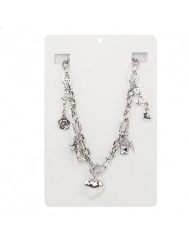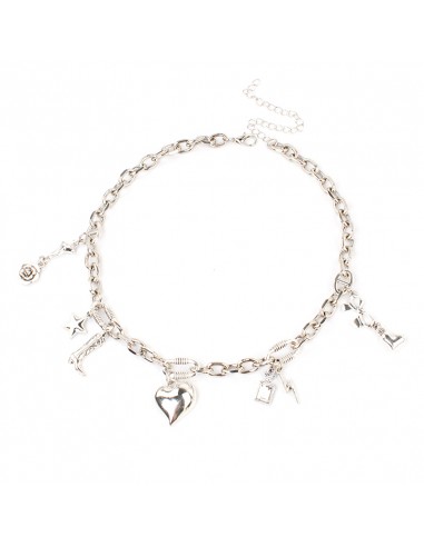 Collar corto de cadena diferenciada y múltiples charms exclusivos níquel.