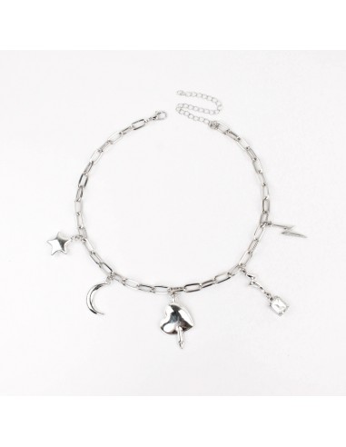 Collar corto de cadena diferenciada y múltiples charms exclusivos níquel.