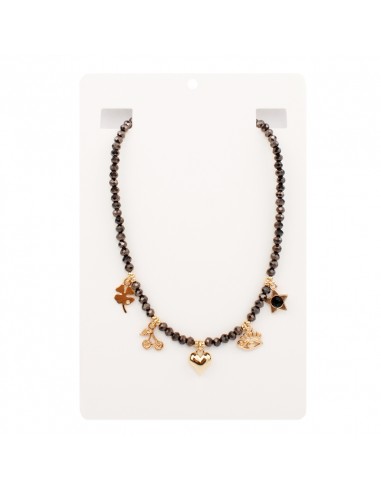 Collar corto de roca de cristal y múltiples charms exclusivos dorados.