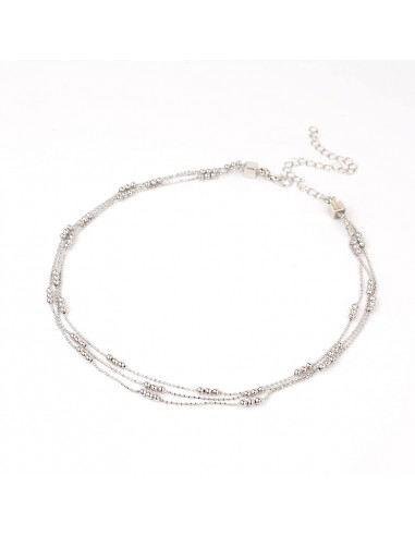 Collar corto con triple caída de cadenas metálicas diferenciada.