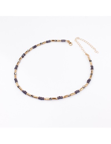 Collar corto de mostacillas diferenciadas y piezas pasantes exclusivas doradas.