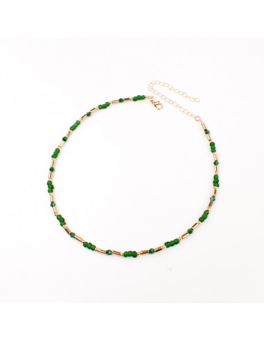 Collar corto de mostacillas diferenciadas y piezas pasantes exclusivas doradas.