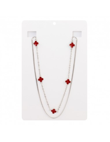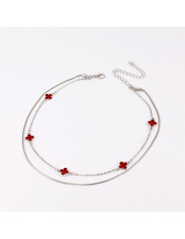 Collar corto de doble caída de cadena diferenciada intervenida con dijes exclusivos con forma de trébol pintados a mano níquel.