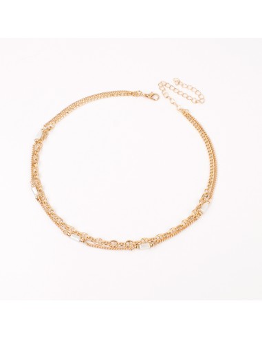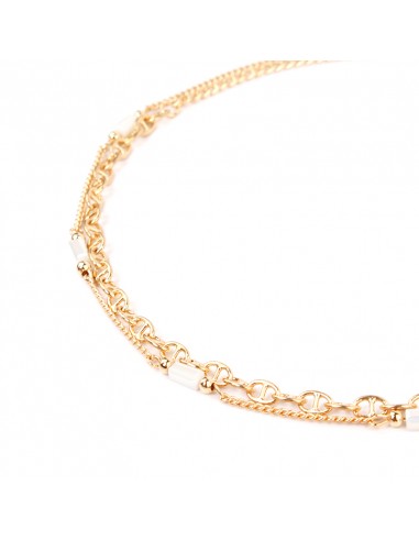 Collar corto de cadena diferenciada intervenida con piezas de cristal. Medidas: 35 y 37 cm. Y largo ajustable con cadena de enganche de 10 cm.