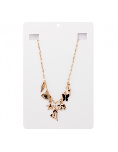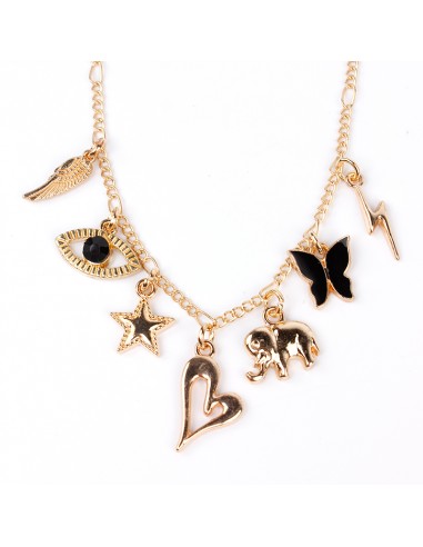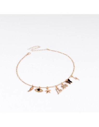 Collar corto de cadena diferenciada y múltiples charms exclusivos y dijes pintados a mano dorados.