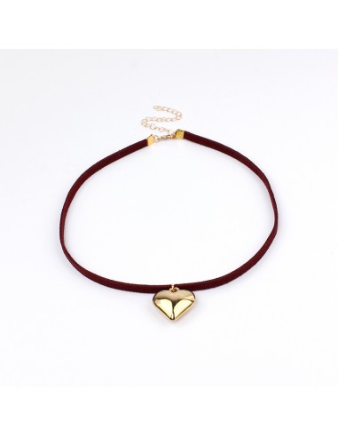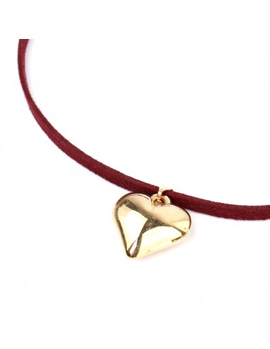 Collar corto de gamuza con dije exclusivo de ccb con forma de corazón dorado.