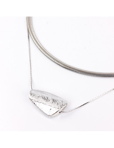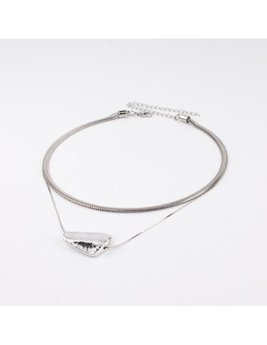 Collar corto de doble caída de cadena diferenciada con dije exclusivo chunky de ccb níquel.