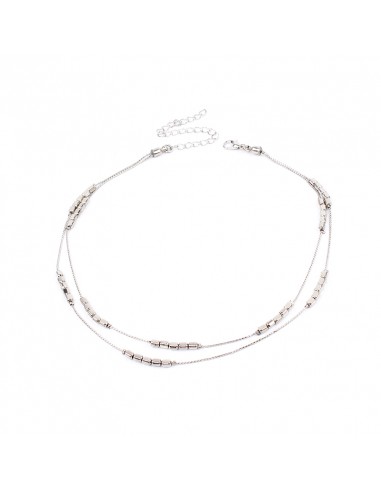 Collar corto de doble caída de cadena diferenciada intervenida con dijes pasantes exclusivos níquel.