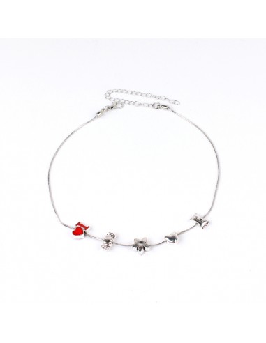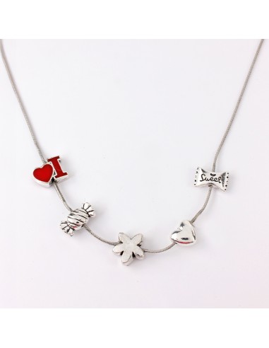 Collar corto de cadena diferenciada y múltiples charms exclusivos y dijes pintados a mano níquel.Cierre con mosquetón y largo ajustable con cadena de enganche.