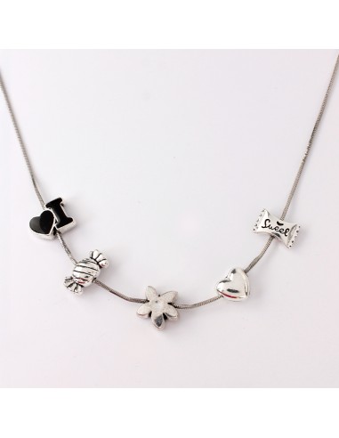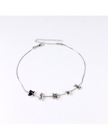 Collar corto de cadena diferenciada y múltiples charms exclusivos y dijes pintados a mano níquel.Cierre con mosquetón y largo ajustable con cadena de enganche.