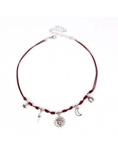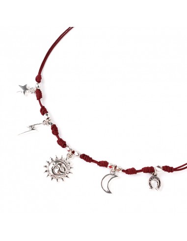 Collar corto de hilo con múltiples charms exlusivos de diferentes formas y tamaño níquel.