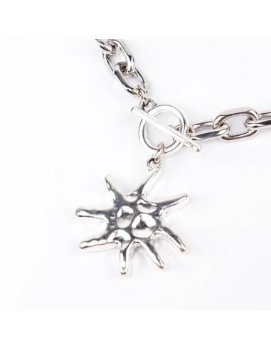 Collar corto de cadena diferenciada con dije exclsuivo en forma de sol y cierre marinero.