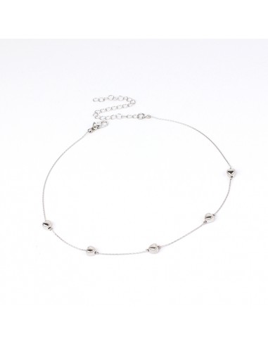 Collar corto de cadena diferenciada con dijes exclusivos en forma de corazón de ccb níquel.