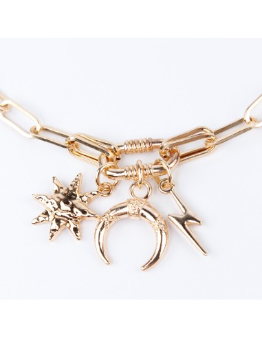 Collar corto de cadena diferenciada con múltiples dijes exclusivos dorados.
