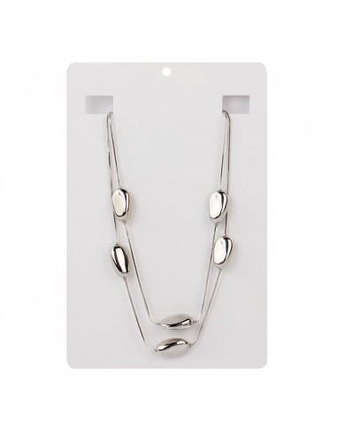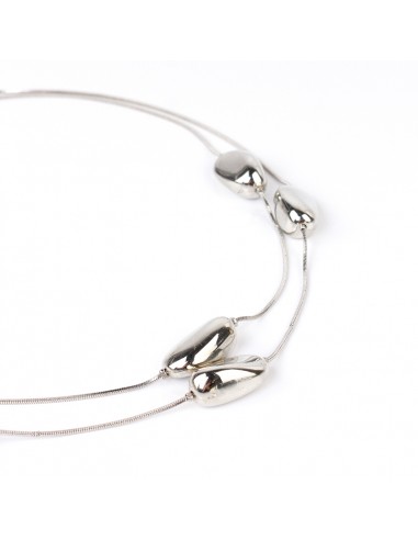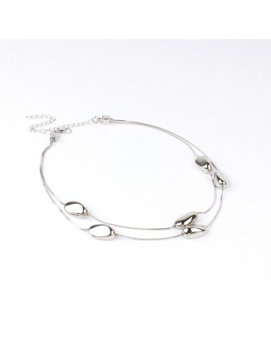 Collar corto de doble caída de cadenas diferenciadas intervenidas con piezas de ccb pasantes de forma orgánica níquel.