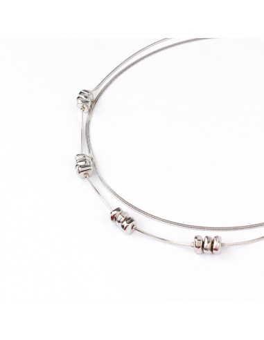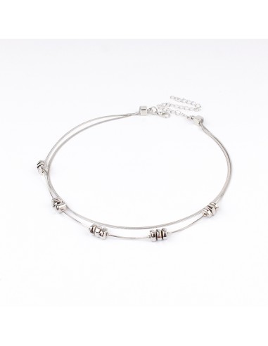 Collar de doble caída de cadena diferenciada con piezas exclusivas de ccb níquel.