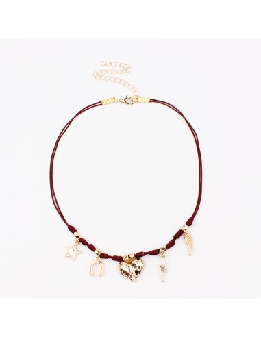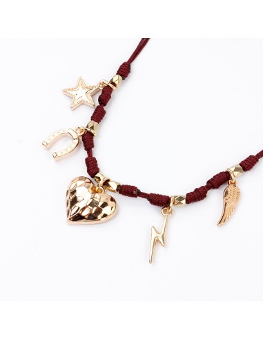 Collar corto de hilo con múltiples charms exclusivos de distintas formas y tamaño dorados.