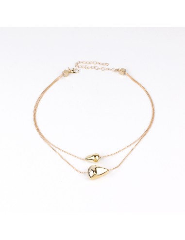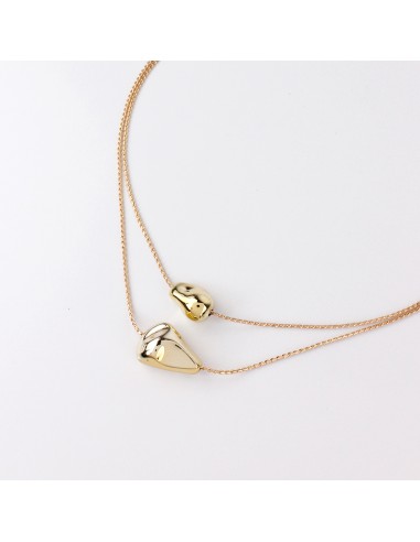 Collar corto de doble caída de cadenas diferenciadas con dijes exclusivos pasantes de ccb dorados de forma orgánica.