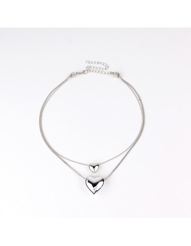 Collar corto de doble caída de cadenas diferenciadas y dijes exclusivos de ccb níquel con forma de corazón.
