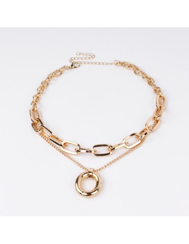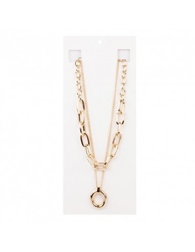 Collar largo de doble caída de cadenas diferenciadas con dije exclusivo en forma circular.