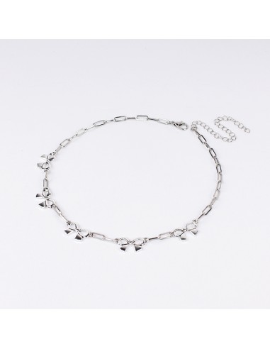 Collar de cadena diferenciada intervenida con dije exclusivo con forma de moños níquel.